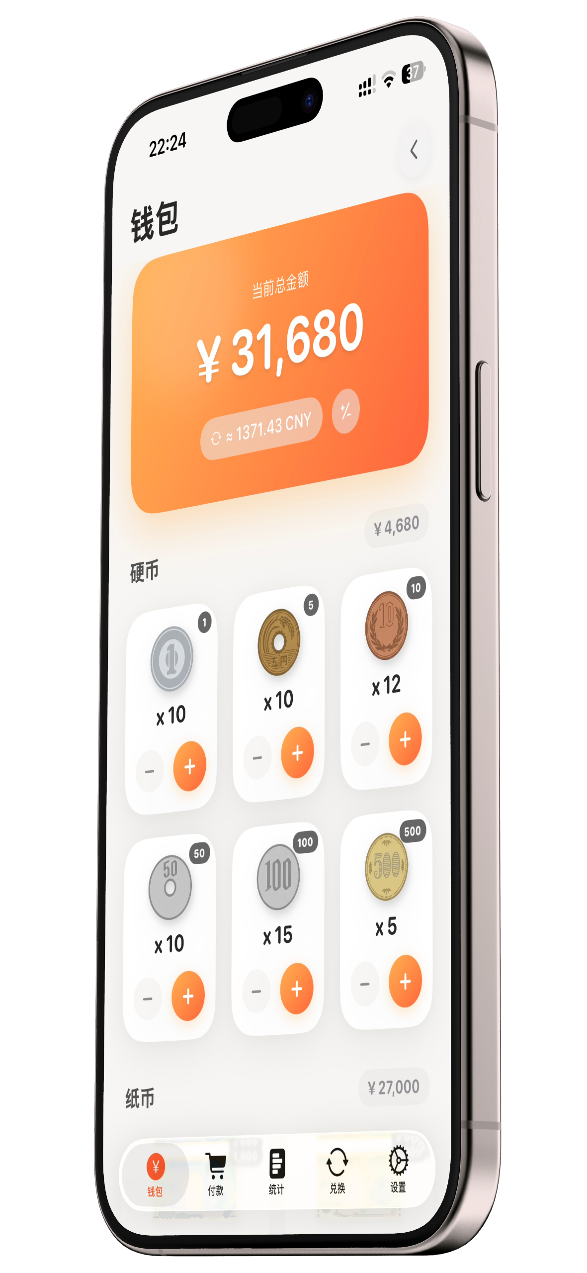 直观展示您持有的硬币和纸币。配合细腻的触感反馈,每一次增减、付款或兑换,都伴随着令人上瘾的 Q 弹震动,让操作过程生动可感。