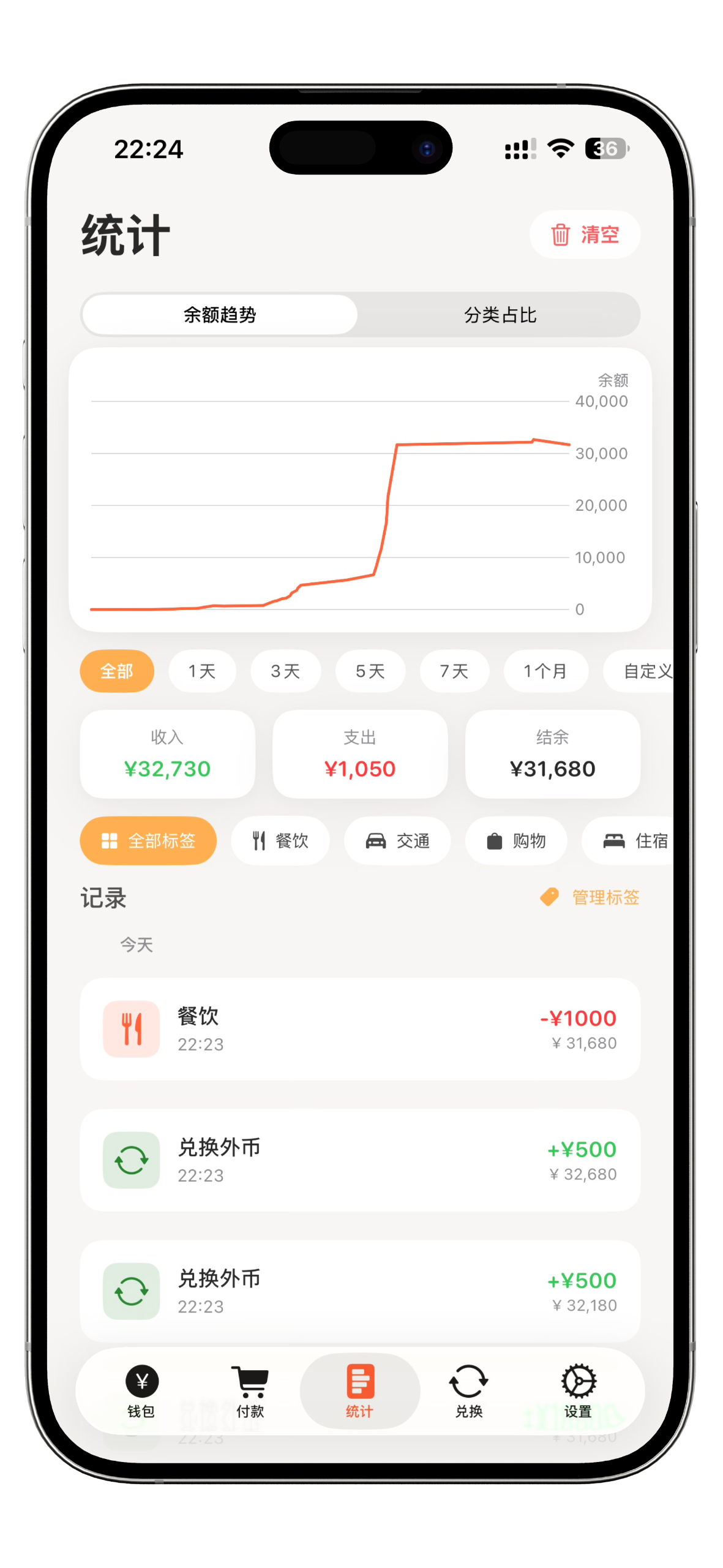 • 全新统计功能(Pro) 支持查看支出与兑换记录、趋势与汇总,用钱情况一目了然